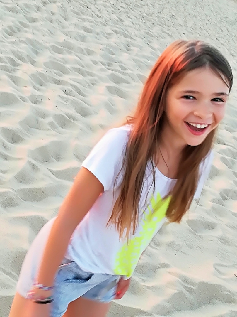 fossette joue droite, petite et musclée, vive et pétillante