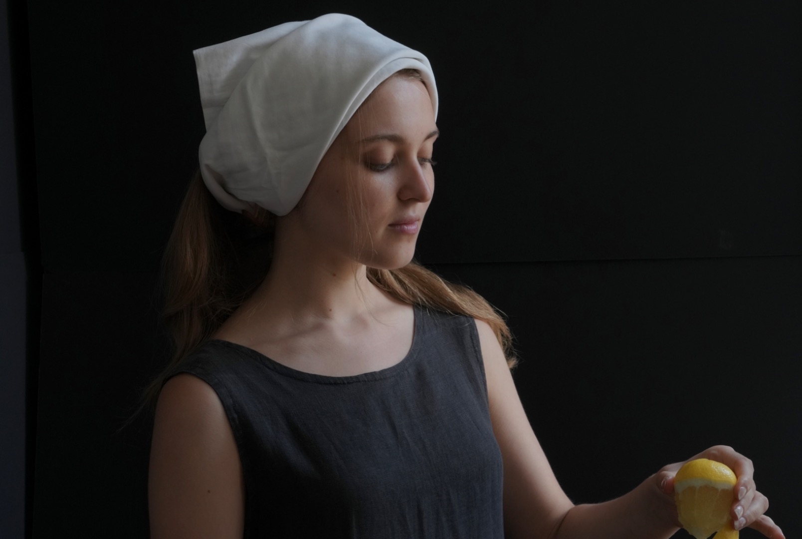Modèle photo référence en costume d’époque pour un shooting photo inspiré de Vermeer