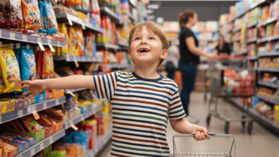 • Un petit garçon âgé entre 4 et 6 ans pour une scène dans un supermarché