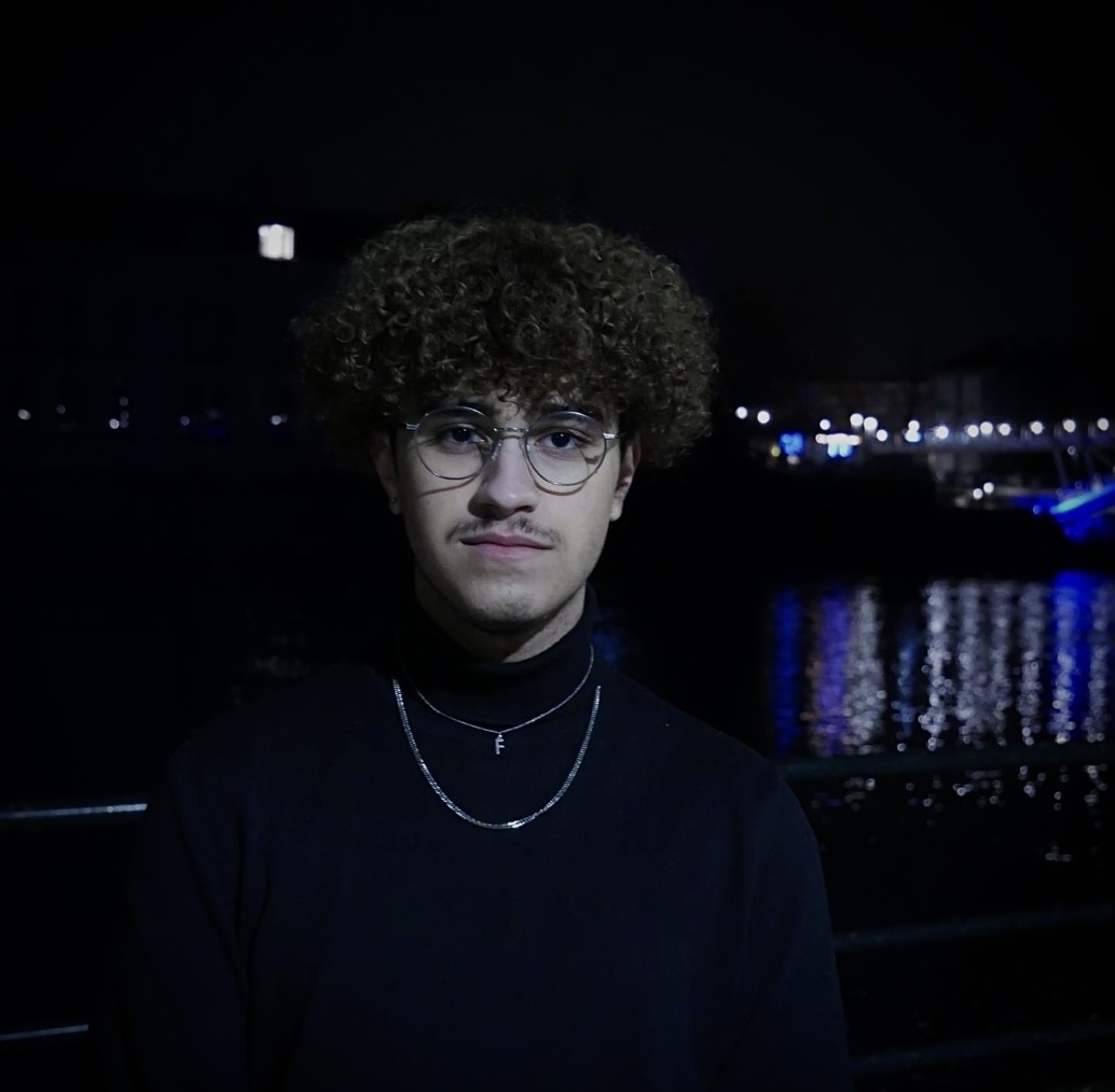 porte des lunettes, un appareil dentaire. grain de beauté en dessous de l'oeil gauche.