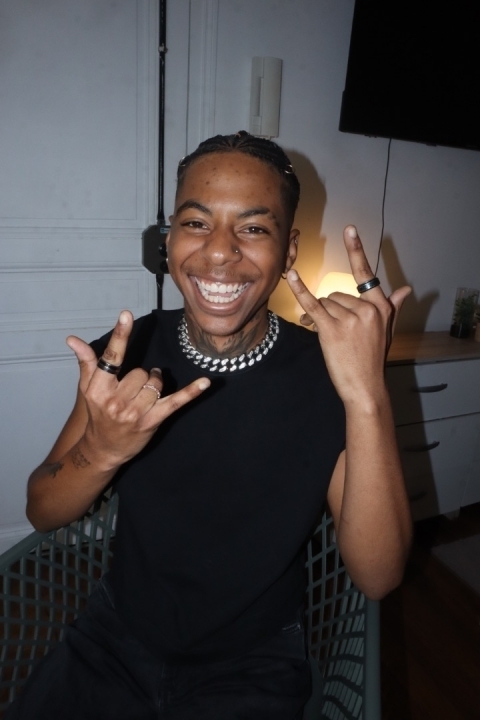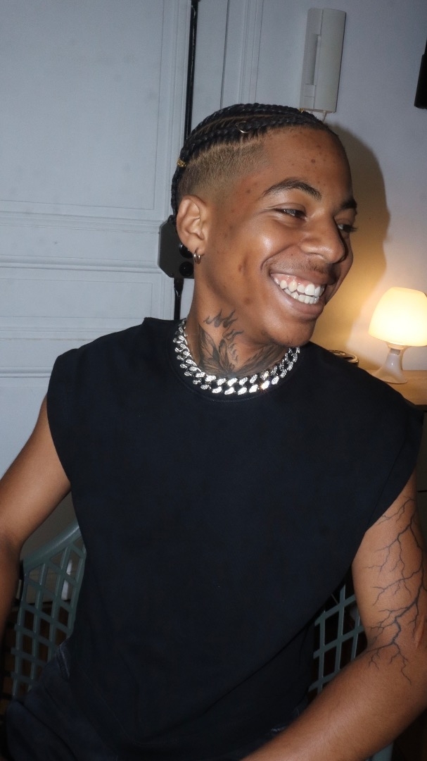 Tatouages aux cou et bras.