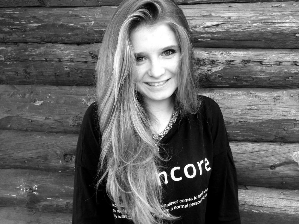 Petite mais bien proportionnée avec des formes et très souriante . Des yeux vert bleu et gris, pas très courant. Des cheveux très long (bas du dos) pas très courant non plus.