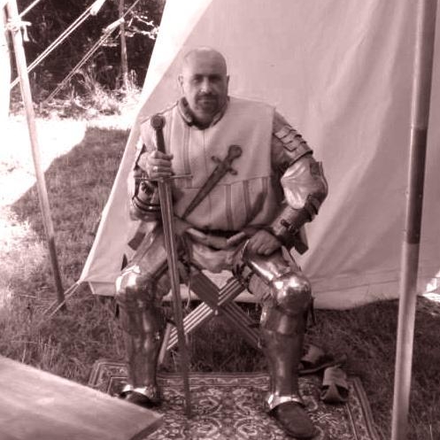 médiévaliste pratiquant l’escrime artistique - monte à cheval (à l aise au 3 allures)