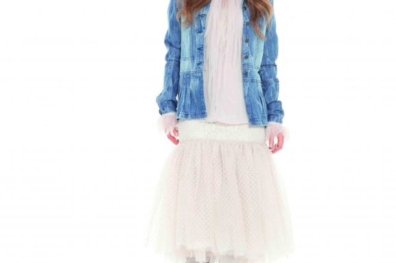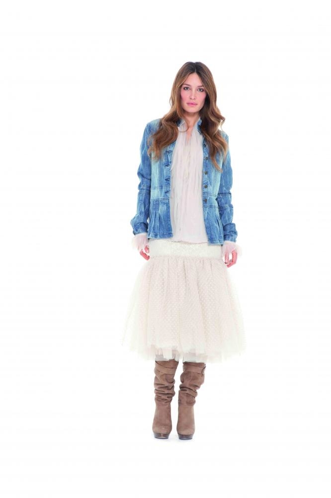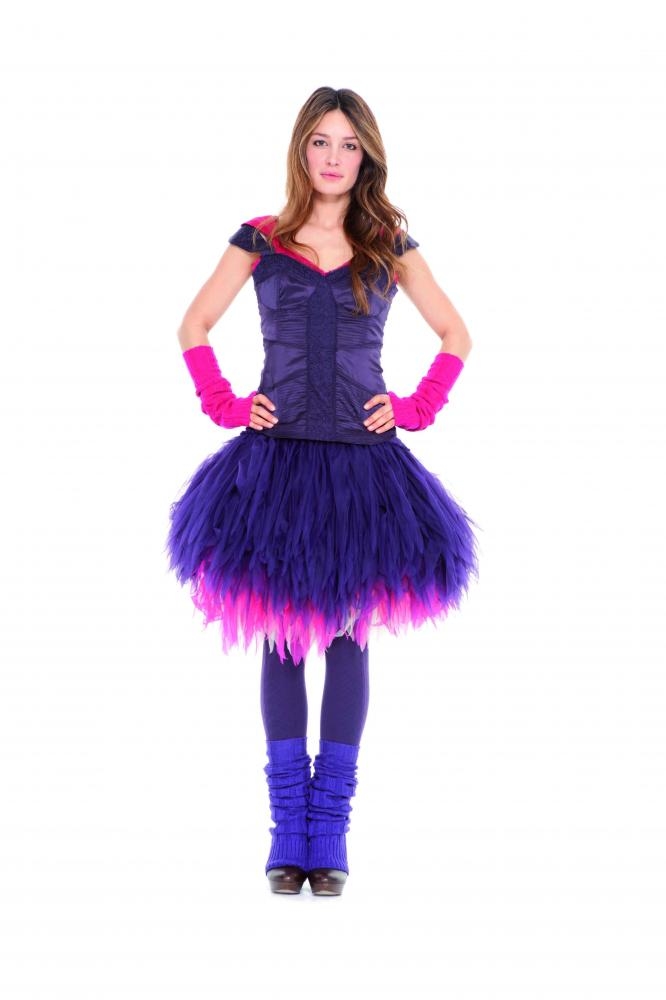 Un univers évoqué par des silhouettes rock aux allures d’antan, radoucies par une pointe de romantisme : des tulles plumetis, de la lingerie décalée avec humour, des légères plumes. Mais l’hiver est là avec les manteaux en gros tweed et les longs gilets Tie & dye. Le masculin féminin à carreaux inspire des détournements ludiques.