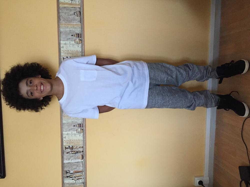 Garçon métisse à la peau claire avec cheveux très frisés