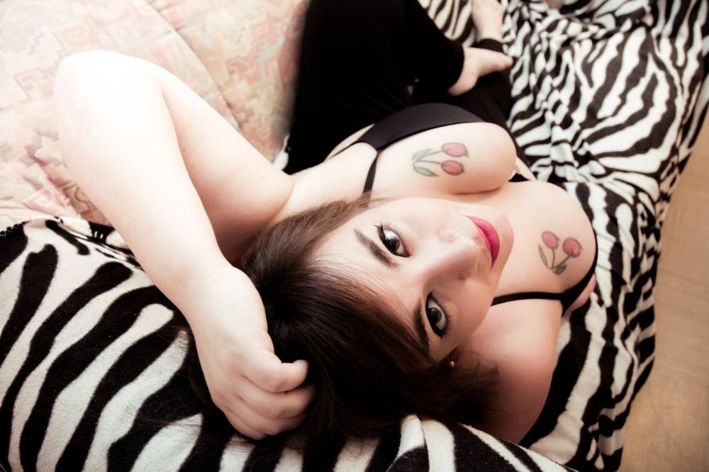 deux tatouages cerises sur la poitrine aime porter perruque et masque