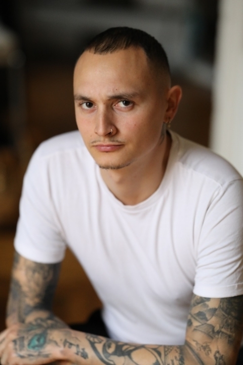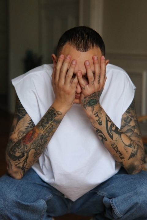 Tatouage a la mains gauche , les deux bras tatoué , un tatouage a la nuque est en dessous de l'oreille, percé au nez