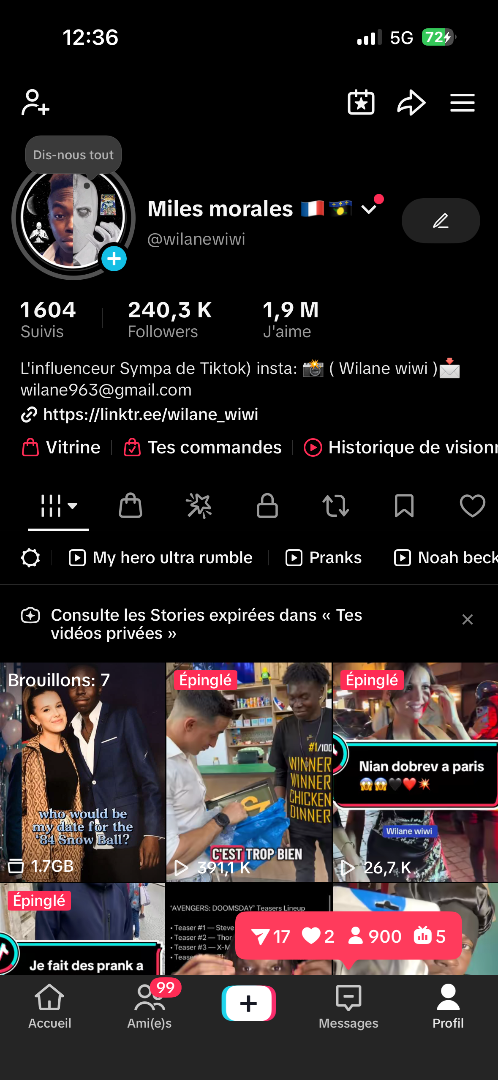 Tiktokeur + 240 000 abonnés + 17 000 sur Instagram , j’ai fait une vidéo avec Tibo Inshape Michou squeezie , et chui prankeur et voici mon liens https://linktr.ee/wilane_wiwi